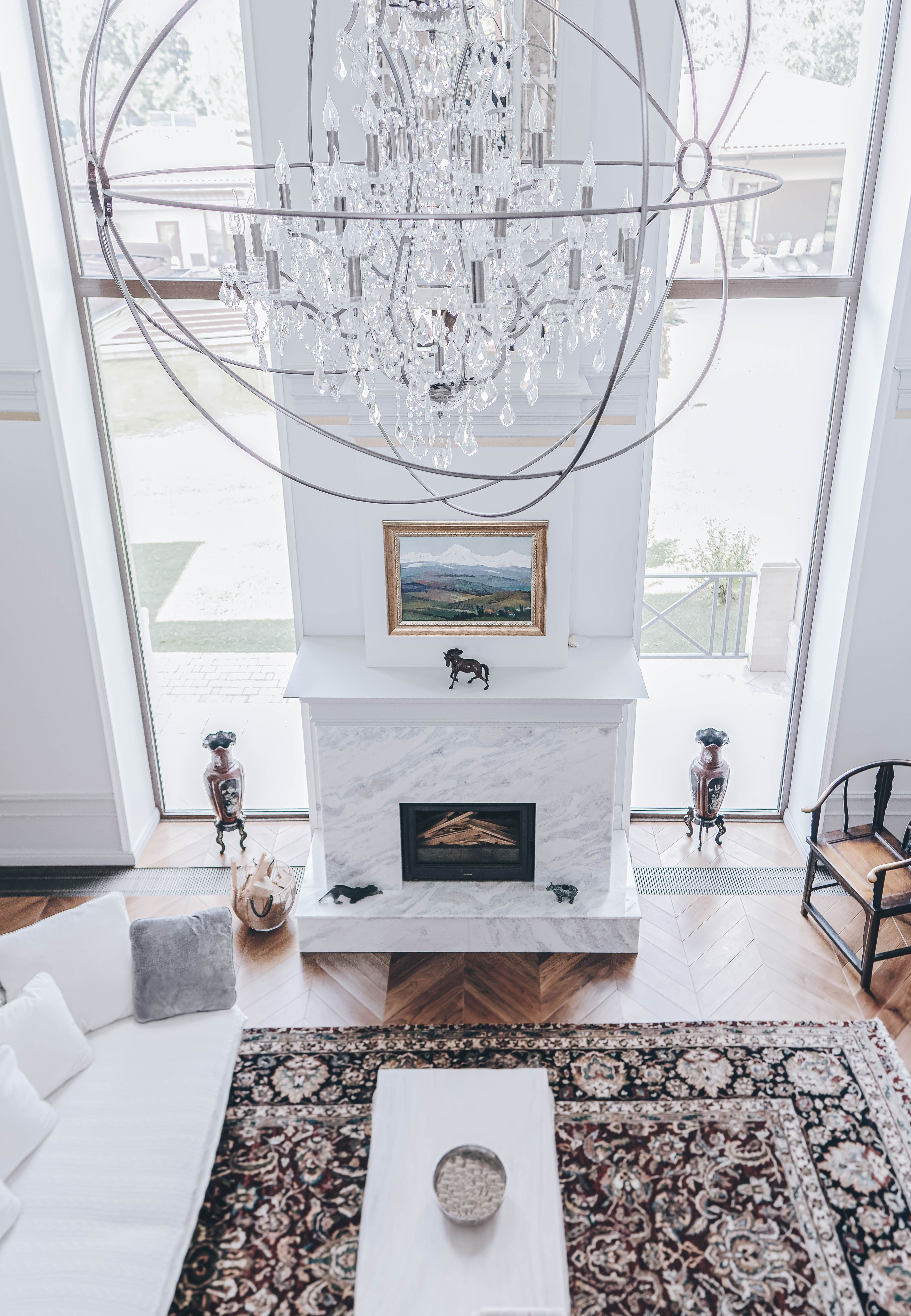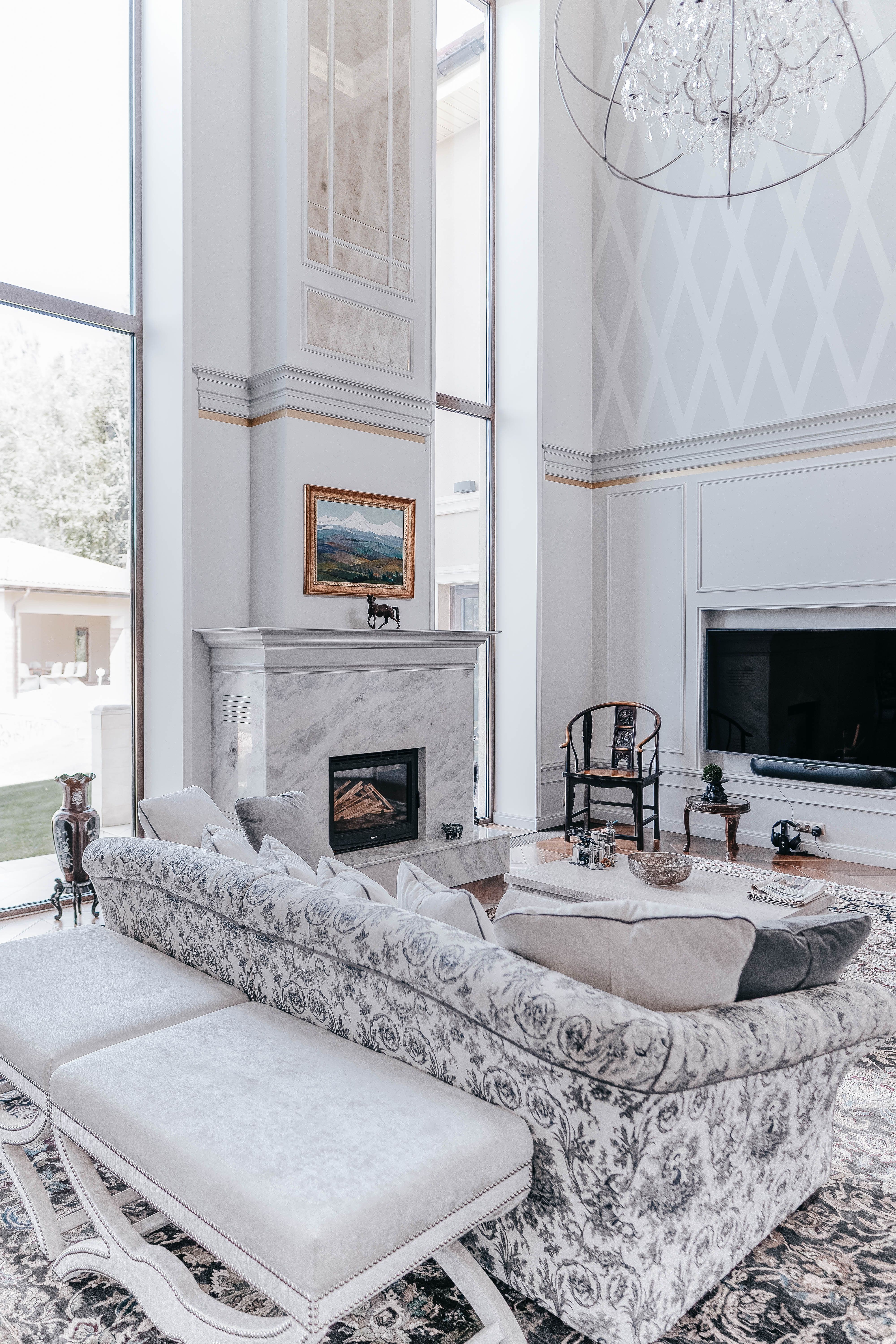 Сердцем дома стала просторная гостиная с обеденной зоной и камином.
