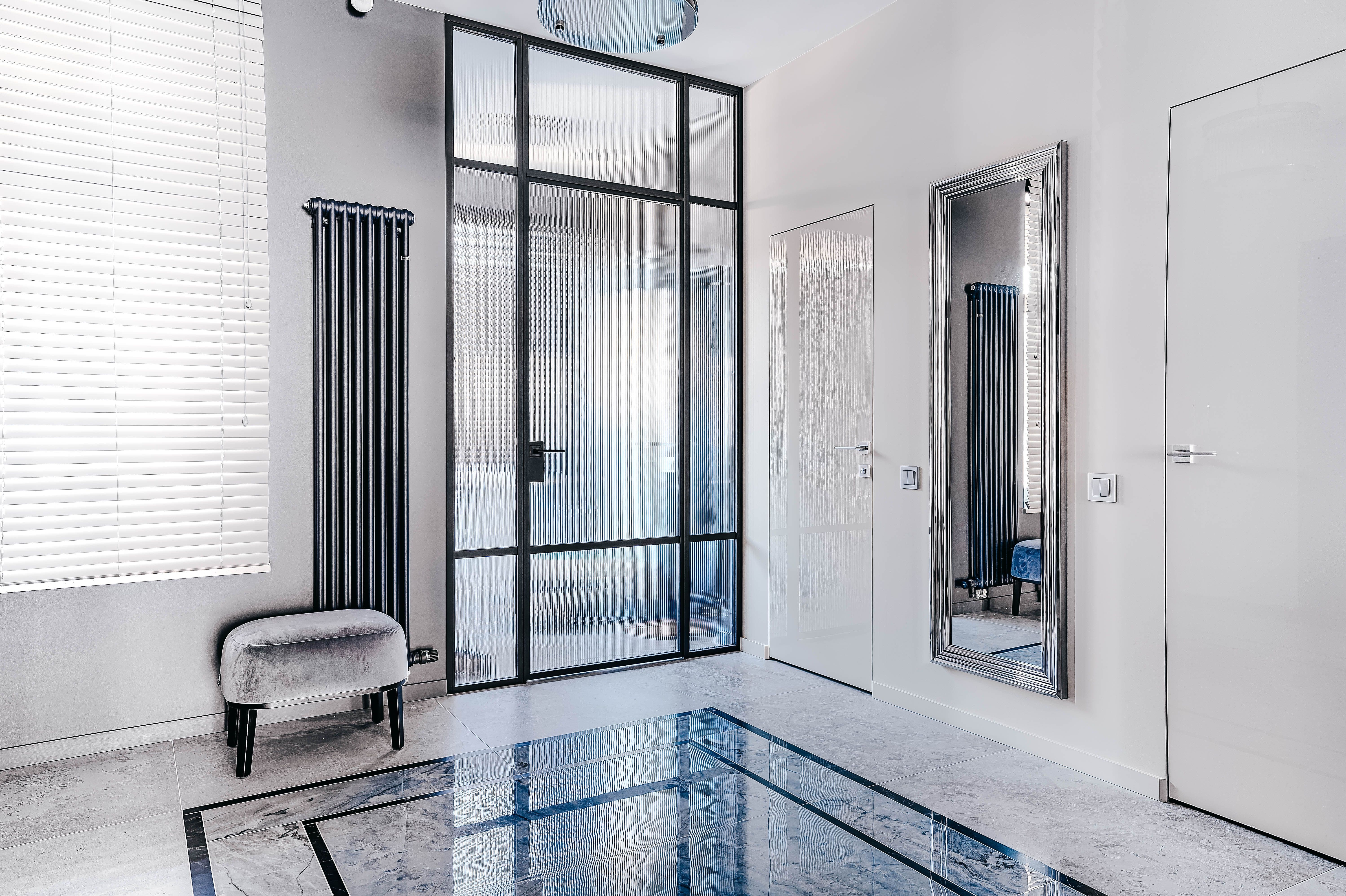 Функциональная перегородка, отделяющая зону прихожей от основного пространства дома, позволила зонировать пространство, не утяжеляя его.